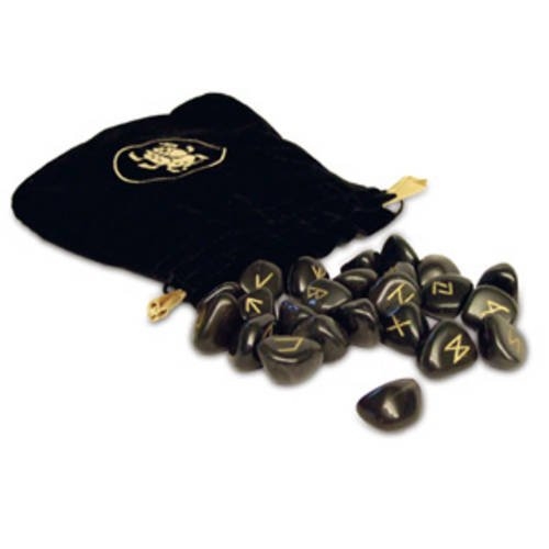 Regeneration, trust, concentration. These twenty-five runes are incised on polished agate, a semi-precious intense green-veined stone.