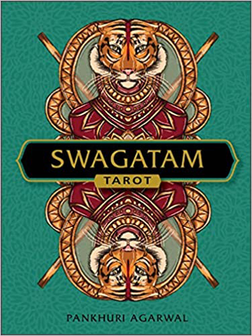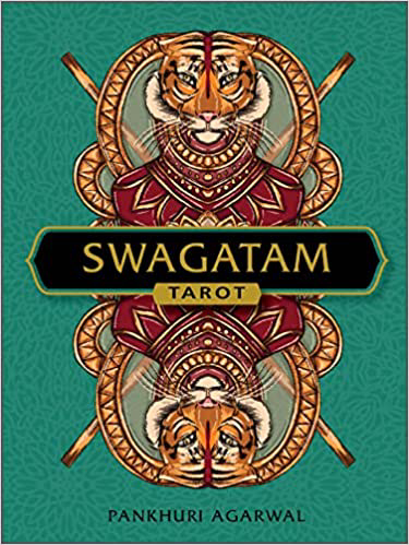 Welcome to the Swagatam Tarot. The word swagatam means “welcome” in Sanskrit, one of the most ancient languages in the world. Based on Indian culture combined with the philosophies of Hinduism, the rich and unique images of this 92-card deck invite you to explore concepts of healing and self-exploration that have been around for centuries. The aces represent mudras, or hand gestures explained through the card images, which act as foundations to your work with yourself and others. An additional Minor Arcana suit, the suit of Smoke, completes the energy of the deck with the fifth element of ether, encompassing space and sky. Those new to Tarot as well as seasoned readers will find this engaging deck an important tool for gaining insight into self-development and well-being. As well as providing keywords and card descriptions, the accompanying guidebook provides an elemental and lifestyle spread to provide balance and overcome challenges. Immerse yourself in the “swag” of this deck, with its rich, cultural delight, for a diverse and in-depth divination experience.
