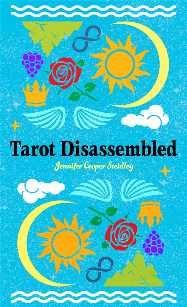 “Tarot Disassembled is an exciting new way to work with the Tarot. Jennifer Cooper Steidley created the deck by isolating the traditional RWS symbols and rearranging them in a bold and colorful pattern on each card. This has the effect of liberating the symbols from time and place, allowing the reader to freely construct new meanings and stories” —TarotArts