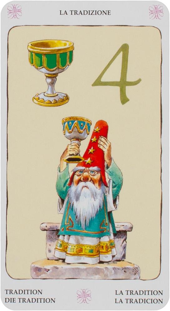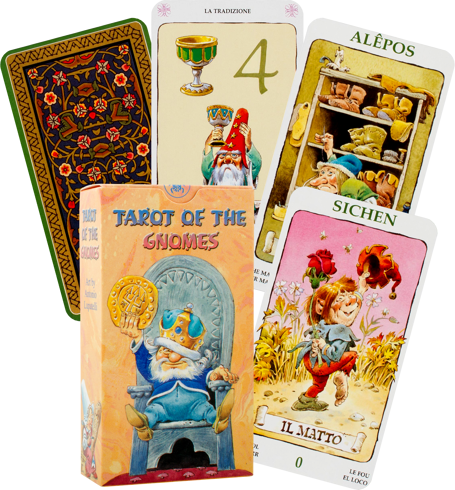 The cards of the little people are the most sought-after cards by teens and adults because they open the doors of the magical and fun world of the gnomes our funny friends who are low in stature but high on wisdom. The seventy-eight arcana are cheerful and enchanting cards capable of telling beautiful stories entertaining and teaching. This deck contains 78 full colour cards.