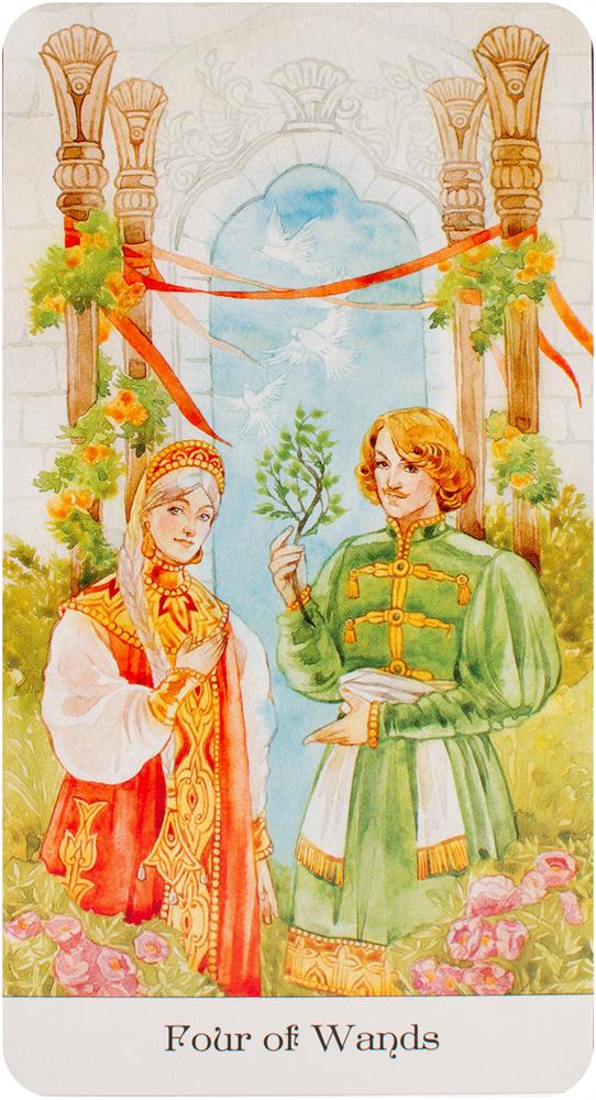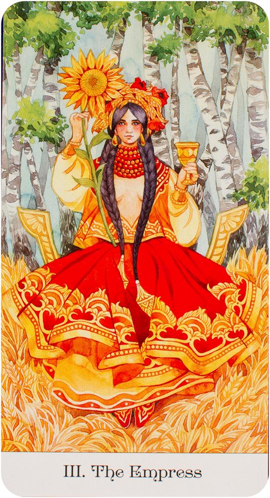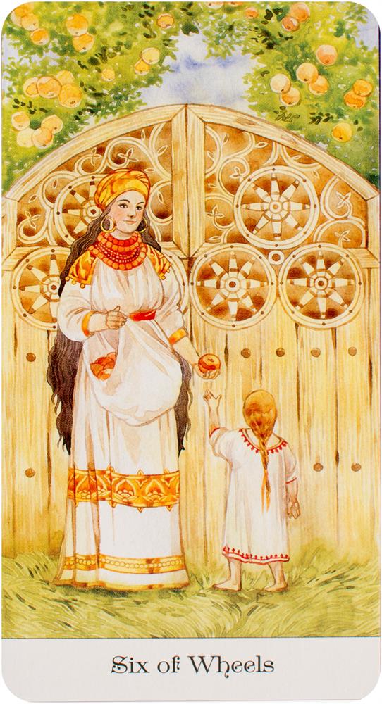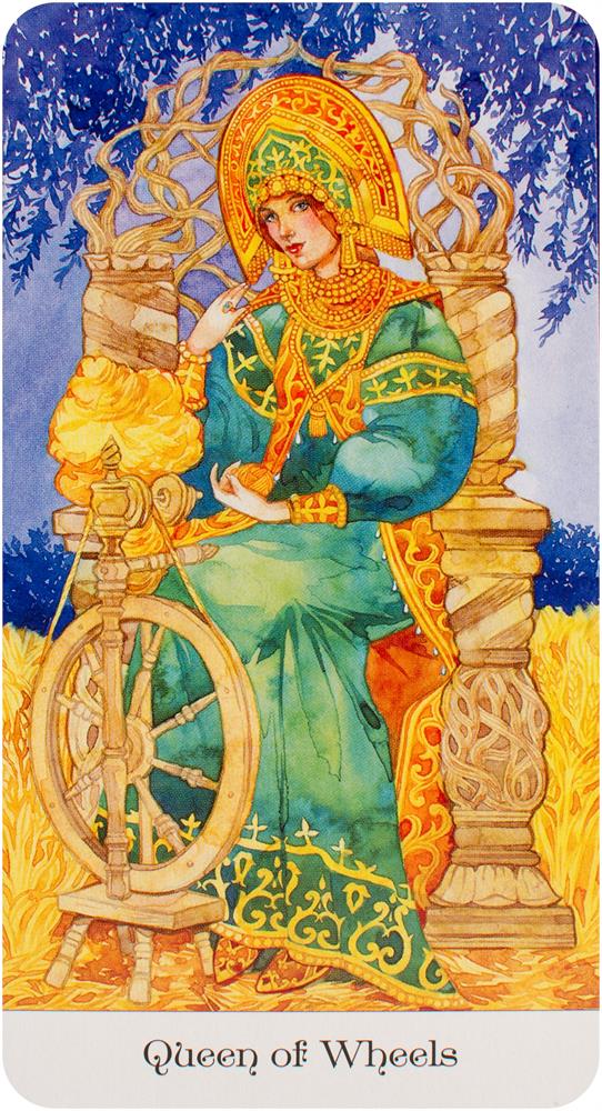 Inspired by the magic and wisdom of Russian fairy tales, Tarot of the Golden Wheel interprets traditional tarot through the prism of colorful Slavic folk culture. In this radiant deck the Golden Wheel, a sacred symbol of karma, the sun, and the infinite cycles of life conveys the Fool on his journey through the Major and Minor Arcana. Includes 78 cards and 84-page guidebook.