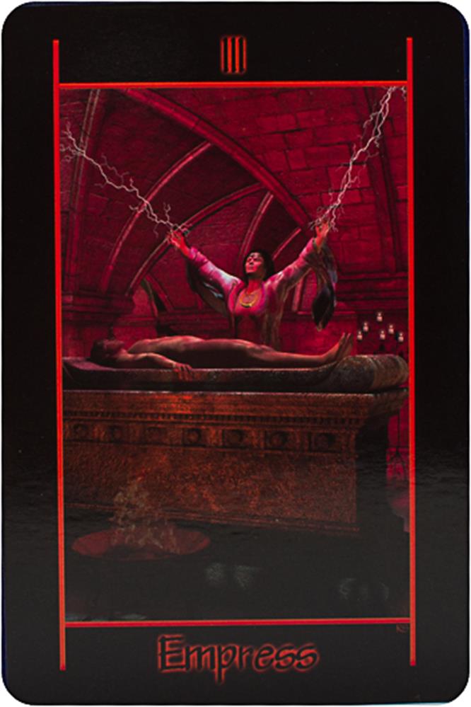 Journey to a three-dimensional world of the Tarot that blends a familiar and traditional style 78-card deck with ghosts, skeletons, and other creatures of the night. Everything is not as it seems in the dark of uncertainty, but if you look close, the details will come to life and the answers will be revealed. Included is an easy-to-follow, comprehensive companion guide that supplies a method of applying the Tarot to the questions you have about your life, offered in a conversational tone for the novice and experienced alike. Rounding out with a detailed understanding of familiar Tarot spreads, and a unique, original spread for self-evaluation (Vincit Omnia Veritas – Truth Conquers All), you will have a complete and enlightening experience. Don't let the creatures of the night frighten you – in Tarot of the Night, they are here to help.<br><br>Includes cards and book.