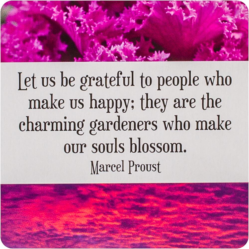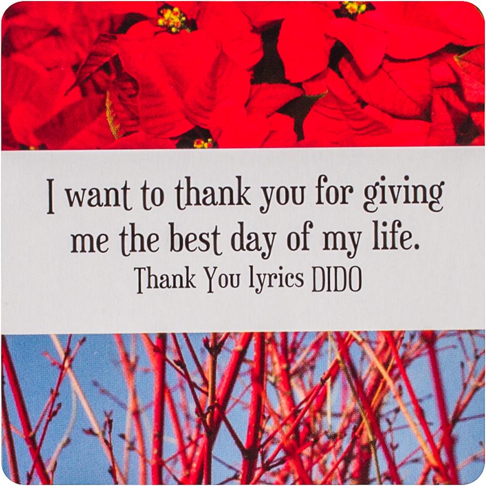 Each Thank You Note allows you to express heartfelt gratitude and appreciation. The act of giving thanks lifts us up and inspires more acts of kindness. These notes can be shared with friends, co-workers and family. The cards can be personalized with a message on the back. 60 square cards in a magnetic hinged box.