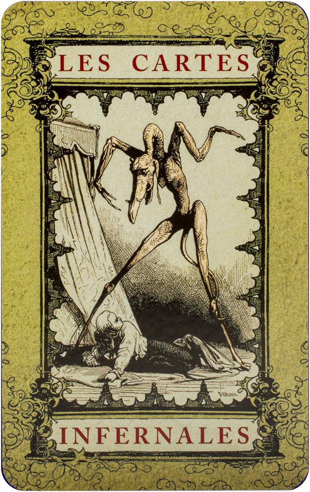 This fiendishly forbidden book and tarot card deck draw upon "Le Dictionnaire Infernal" (Infernal Dictionary), a legendary tome originally published in 1818 by French occultist Jacques Auguste Simon Collin. Working from centuries of arcane magical texts, Collin described ancient daemons and organized them into hellish hierarchies.