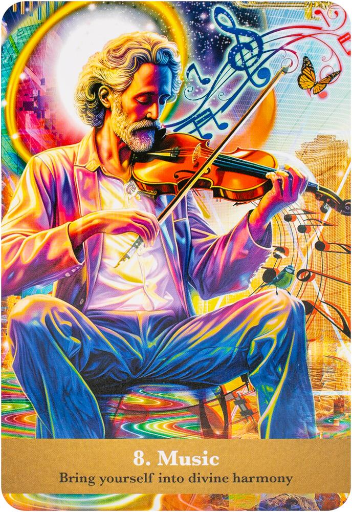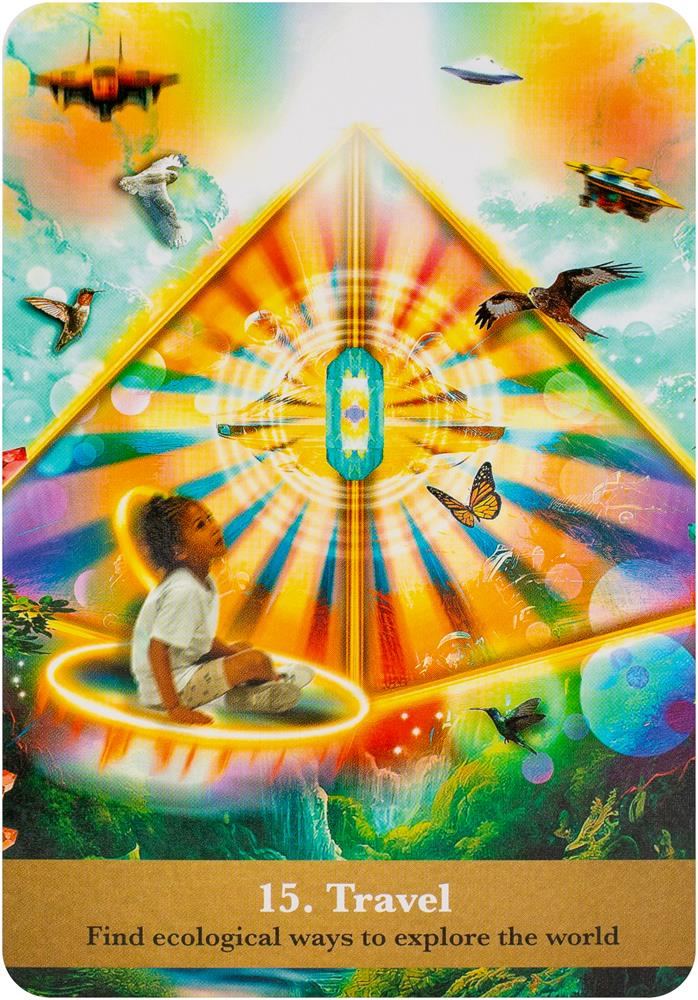 Each card connects you with the spiritual beings overseeing each aspect of our Golden Future. Lady Nada will help you to tune into your divine health blueprint; Lord Gautama, as the embodiment of wisdom, will encourage you to trust that your needs will be provided for; and Universal Angel Butyalil will encourage you to accept yourself as a cosmic being.