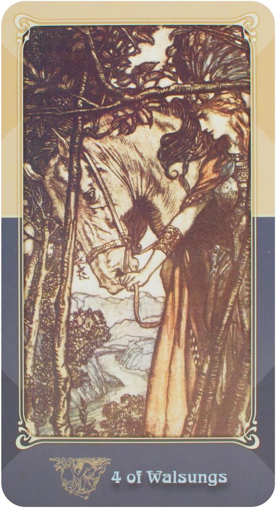 This beautiful 78-card Tarot deck, adapted from the illustrations of Arthur Rackham, interprets Richard Wagner’s four-part opera, The Ring of the Nibelung, which traces the mythic tale of a golden ring of unlimited power plagued by a deadly curse, loose in the world of the Old Norse and Germanic gods. An End Time prophecy infuses the epic story with thought-provoking, contemporary resonance. The four elemental Tarot suits in this powerful divination tool are realized from four Ring Cycle races: Gods (Fire/Wands), demi-god Walsungs (Water/Cups), human Gibichungs (Air/Swords), and dwarf Nibelungs (Earth/Disks/Pentacles). The accompanying book explores divinatory meanings, lensed partly through the feminine and esoteric, and also delves into The Ring of the Nibelung’s characters, plot, themes, and unique music, which would inspire J.R.R. Tolkien’s Middle-earth novels decades later. This deck remains true to the spirit of Wagner, Rackham, and the Tarot, demonstrating useful contemporary insight into all three of these timeless arts.Includes cards and book.