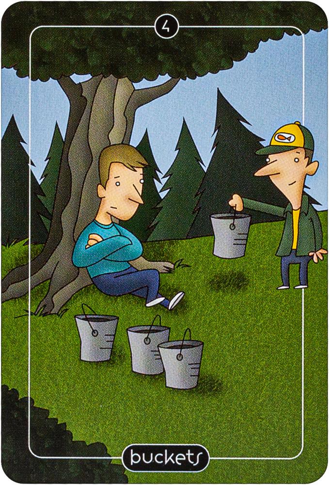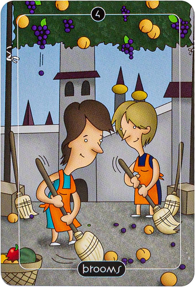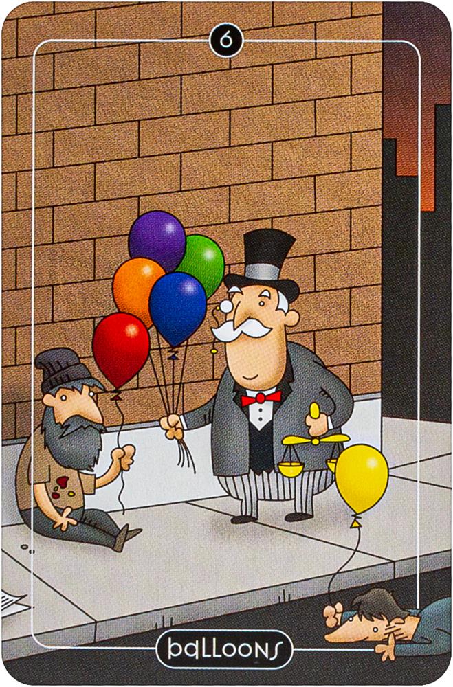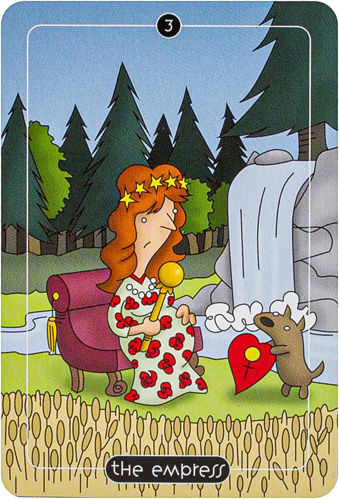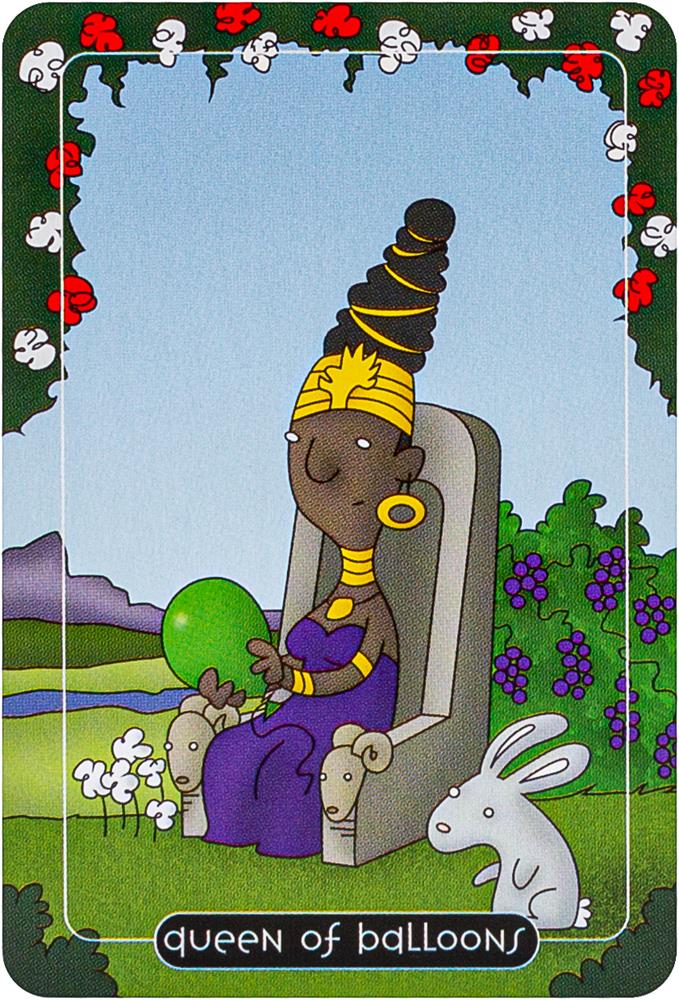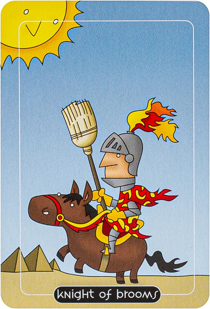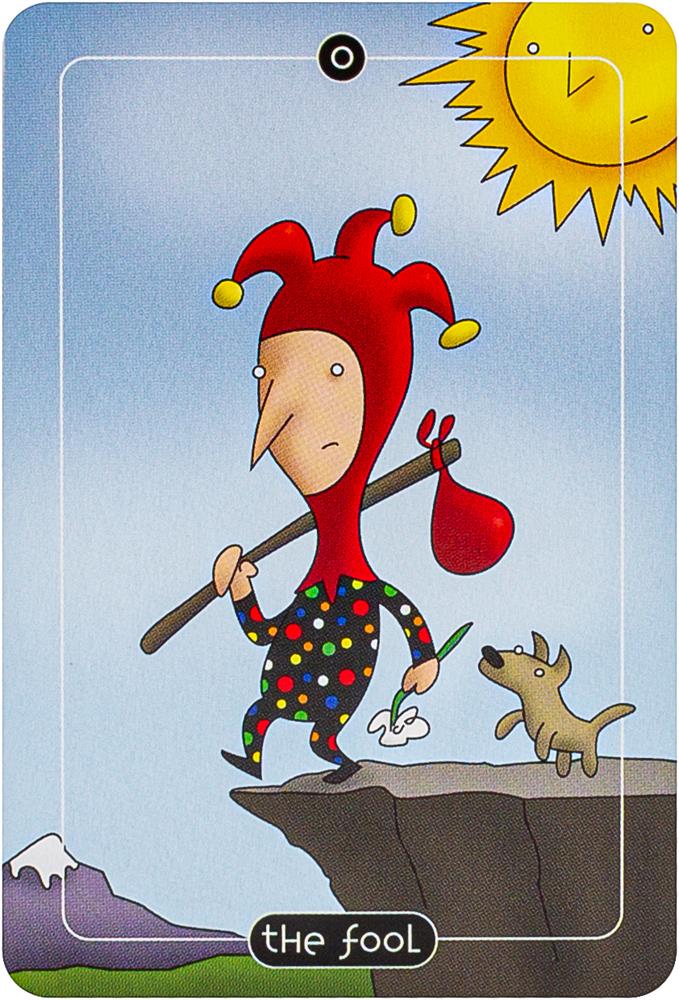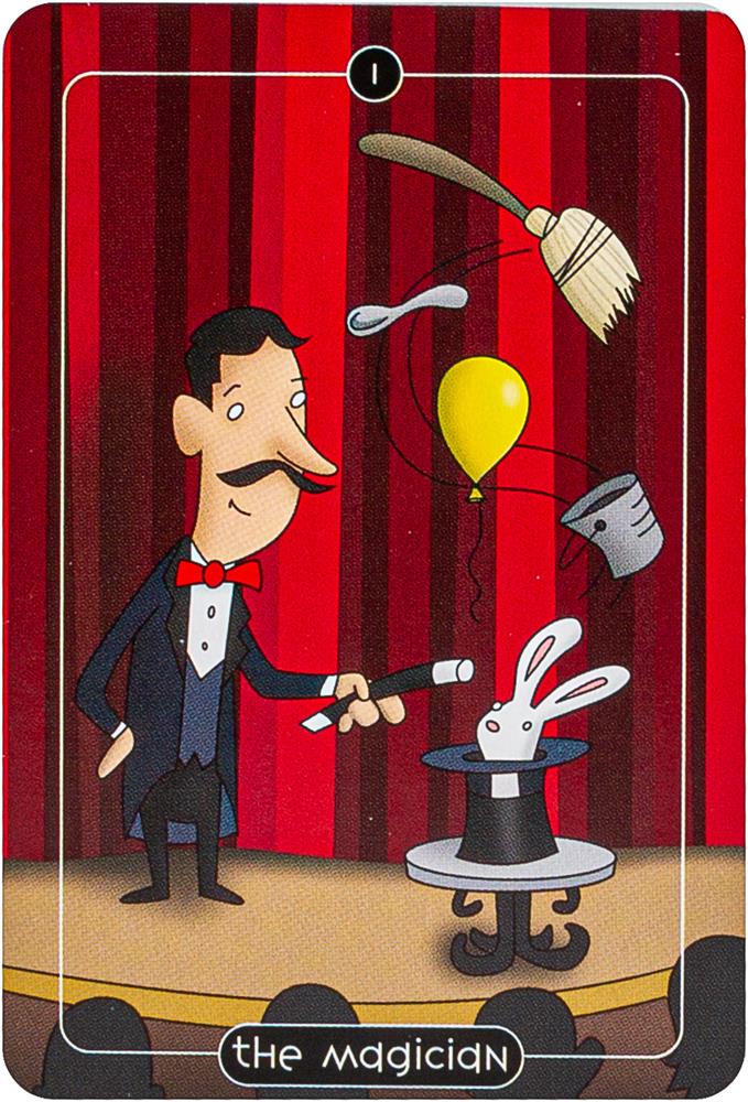 Comic strip artist Adam Stoller takes a humorous approach to traditional tarot with colorful cartoon-like artwork and reimagined symbols and figures. The four suits of the Minor Arcana have been transformed into Spoons, Balloons, Buckets and Brooms. Tarot readers will enjoy searching for mischievous meanings and amusing correspondences in this delightful pocket-sized deck in a tin. Includes 78 cards and 64-page booklet.
