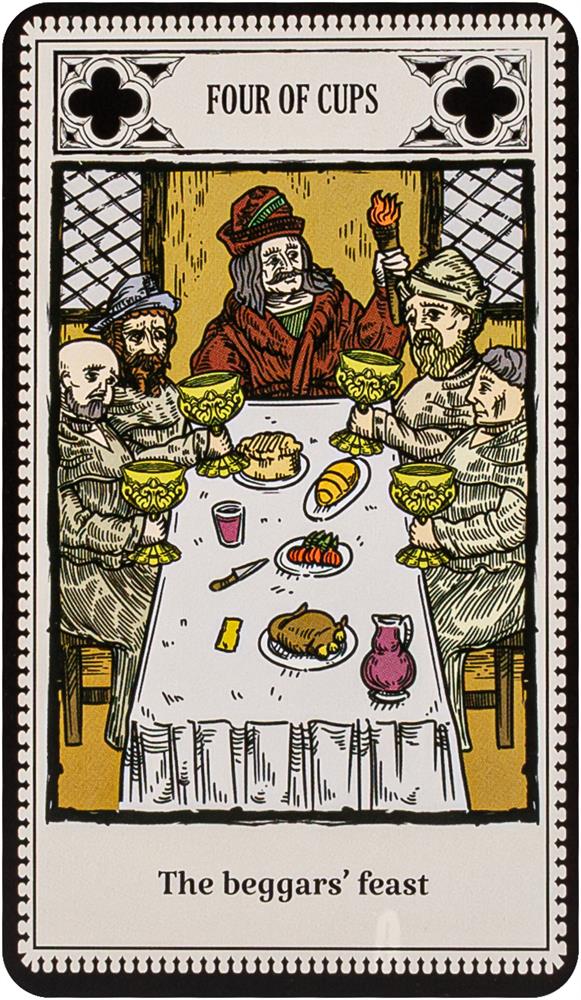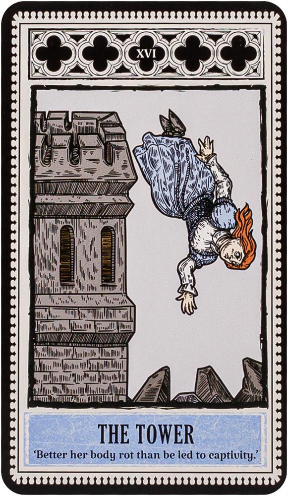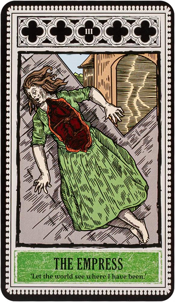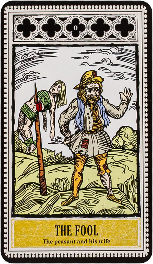 The 78 original woodcuts of the deck depict scenes of cruelty and cunning masterfully drawn by Russian artist Nikita Vuimin from instructions provided by Travis McHenry, author of the Occult Tarot and Angel Tarot and one of the foremost occultists of the modern era.