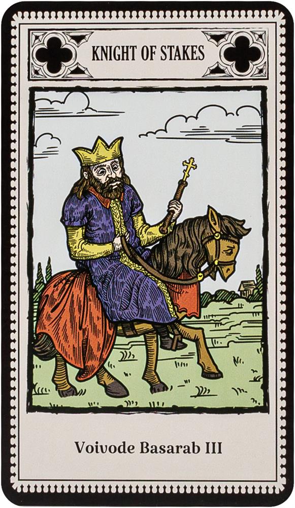 The Vlad Dracula Tarot is a 78-card tarot deck and booklet based on the life of Vlad the Impaler, the infamous mediaeval ruler of Romania who inspired Bram Stoker's legendary vampire.