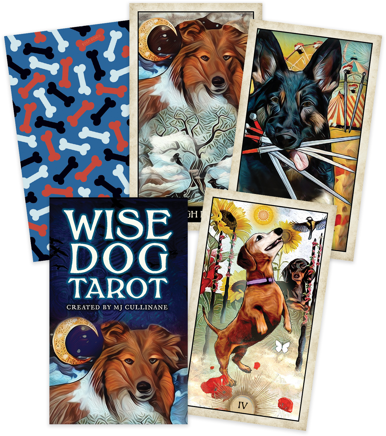 Wise Dog Tarot was created as a tribute to the unconditional love and loyalty of dogs, large and small. Inspired by the symbolism of Rider-Waite, these 78 vibrant tarot cards help connect us to the wisdom and intuition that dogs are eager to share with us.