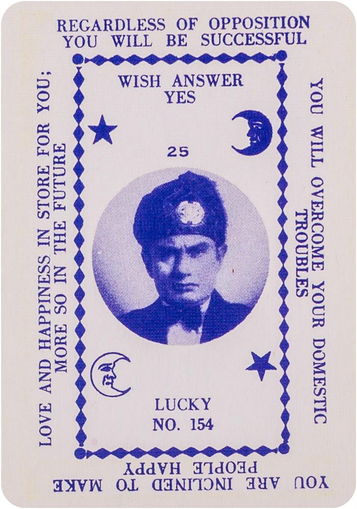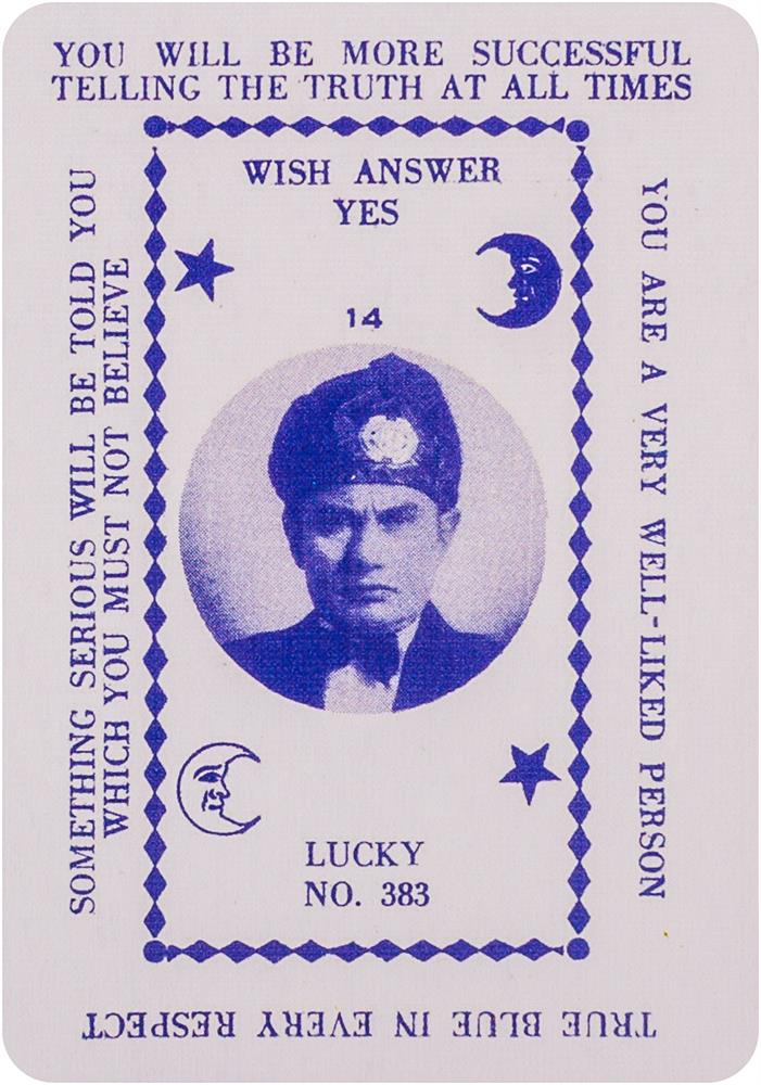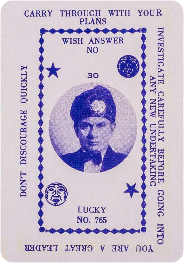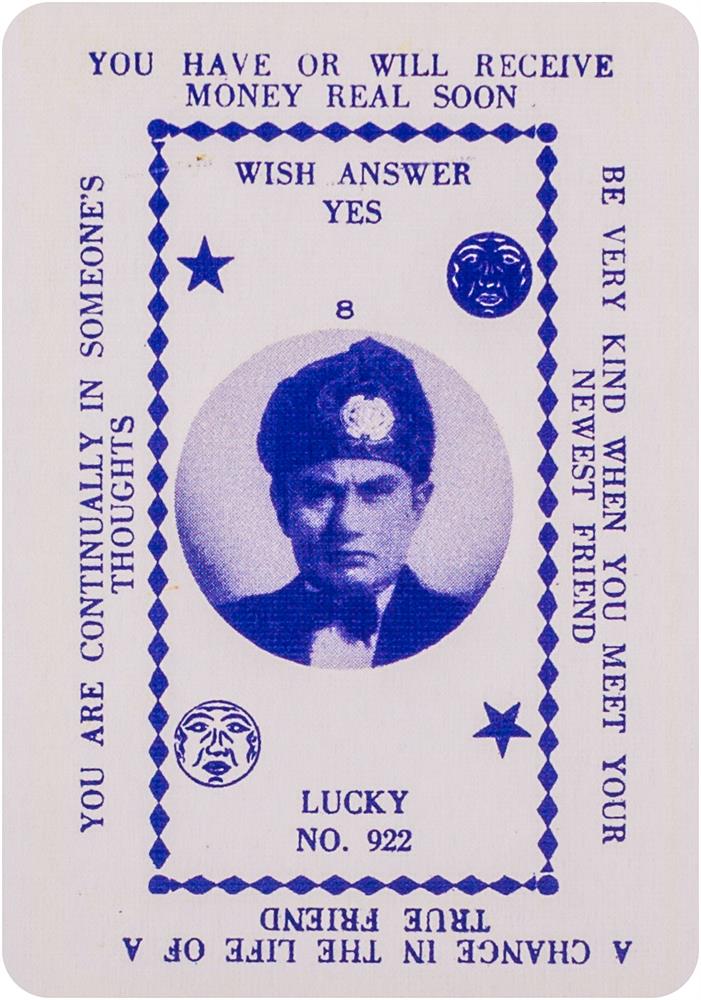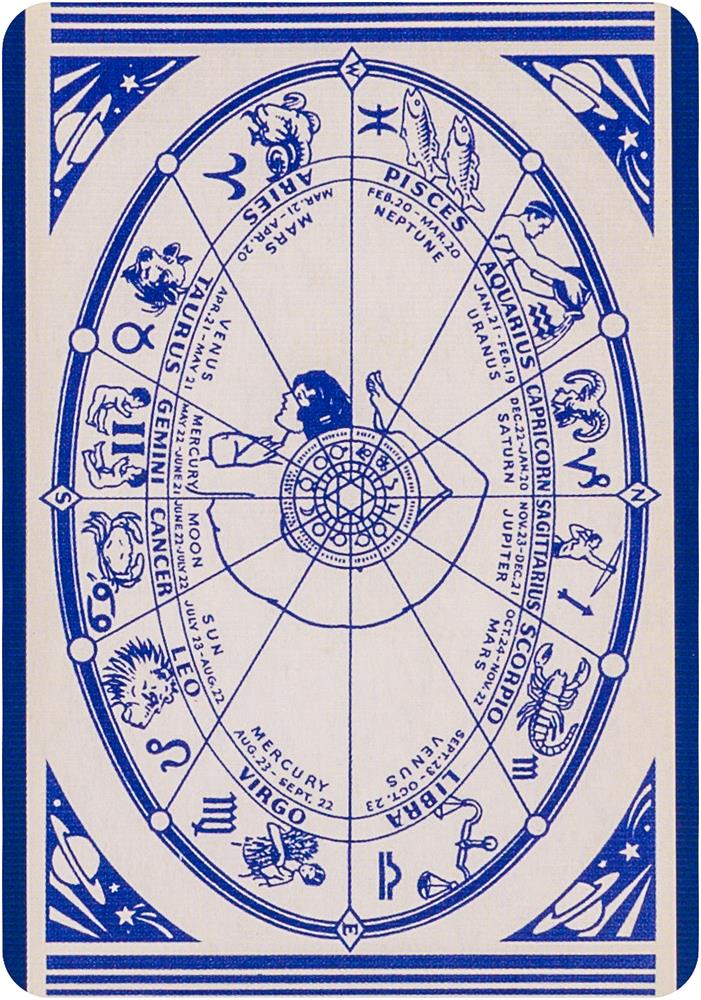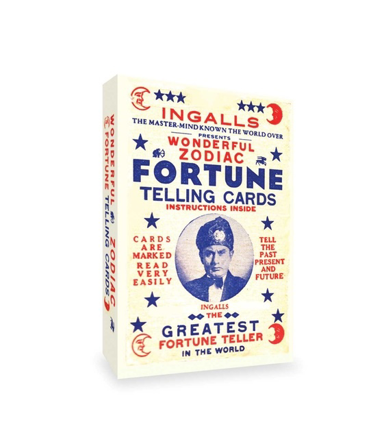 Vintage deck of 52 cards with miniature cards in the upper left corners and descriptive pictures with meanings on the remaining portions of the cards. Also suitable as a regular deck of playing cards. Includes instructions.