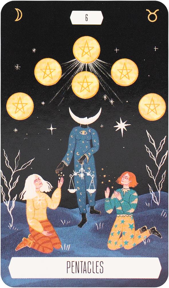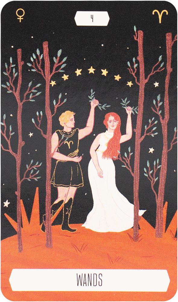 The Major Arcana correspond to the 12 Zodiac signs and 10 planets; the Minor Arcana are divided into the 4 elements and corresponding Zodiac signs: Swords is represented by Gemini, Libra and Aquarius (air signs), Cups by Cancer, Scorpio and Pisces (water signs), Wands by Aries, Sagittarius and Leo (fire signs), Pentacles by Taurus, Virgo and Capricorn (earth signs). Traditional meanings of the RWS tarot are connected to new and unexpected astrological interpretations.